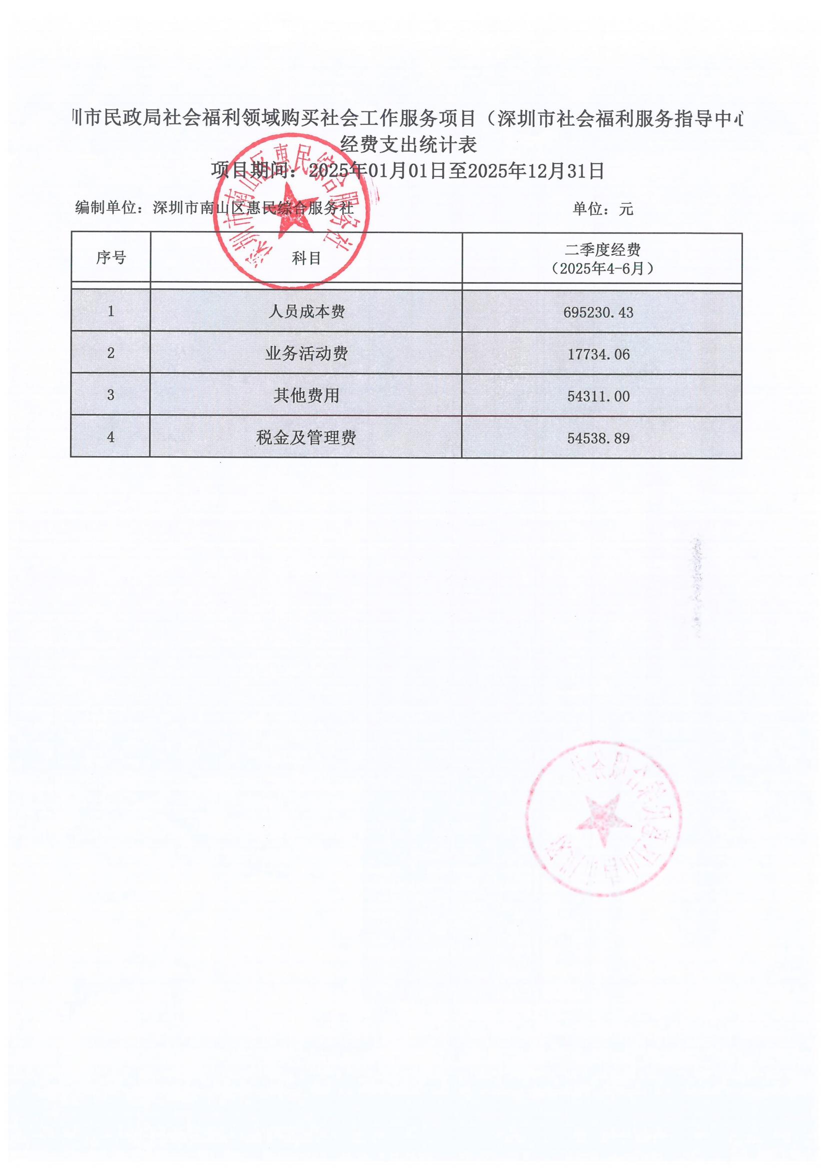 深圳市民政局社会福利领域购买社会工作服务项目(深圳市社会福利服务指导中心)经费支出统计-第二季度(2025年4-6月)