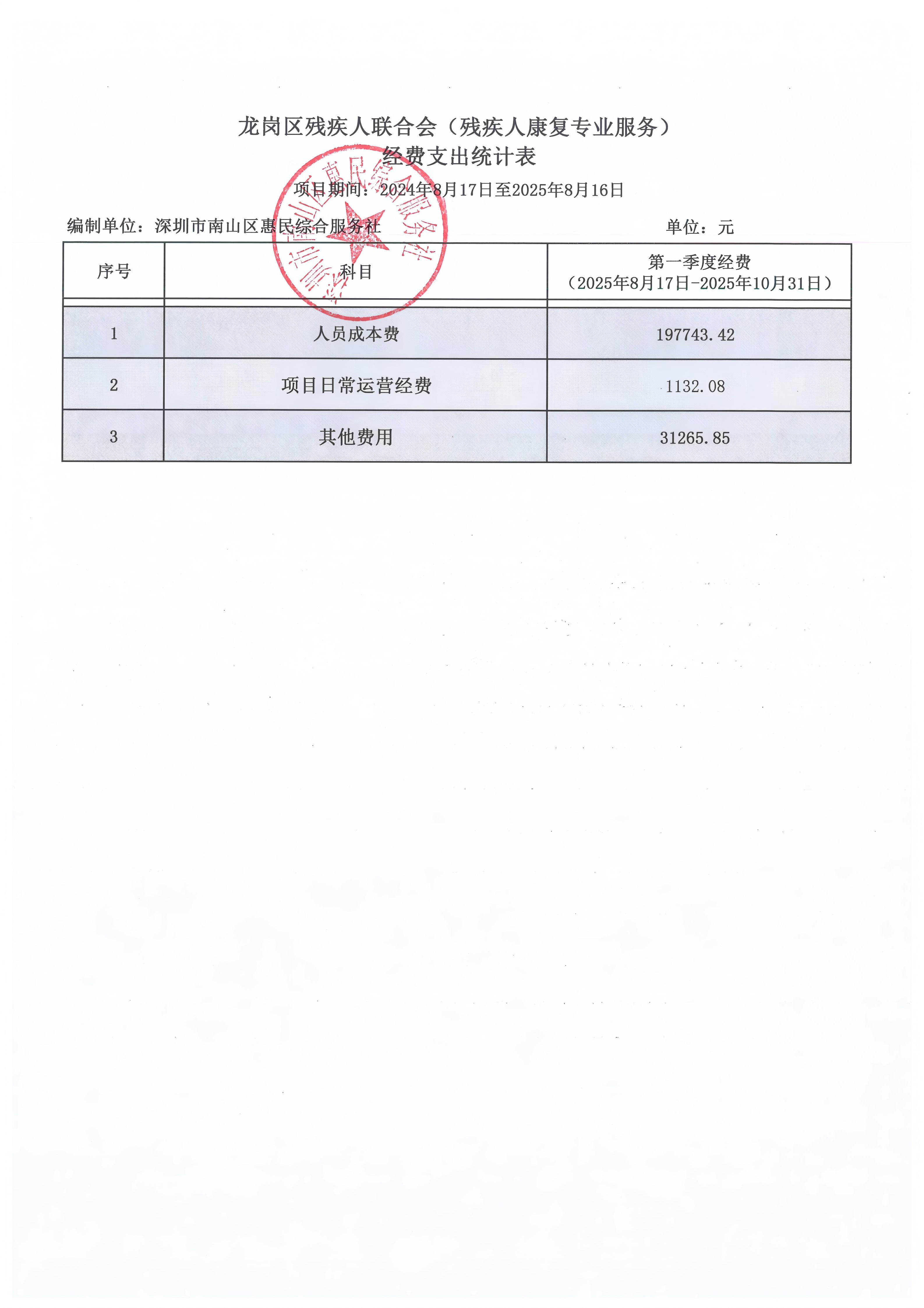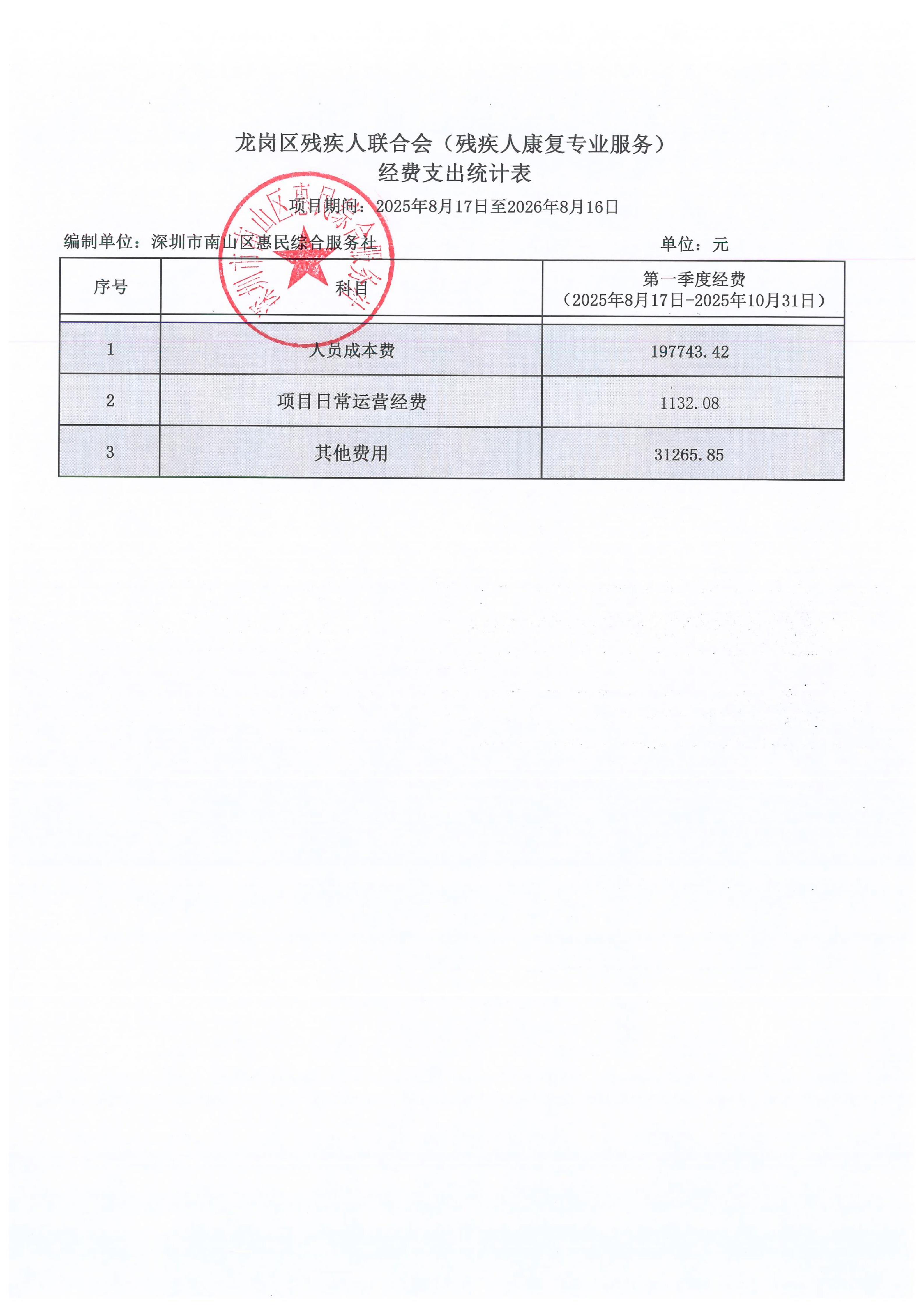 龙岗区残疾人联合会(残疾人康复专业服务)经费支出统计表(2025.8-2025.10)