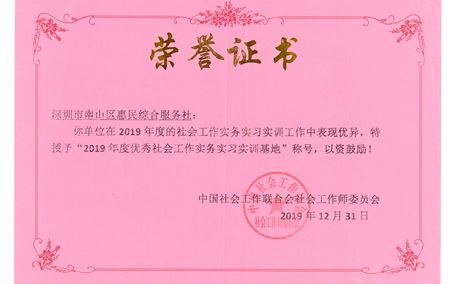 2019年度优秀社会工作实务实习实训基地