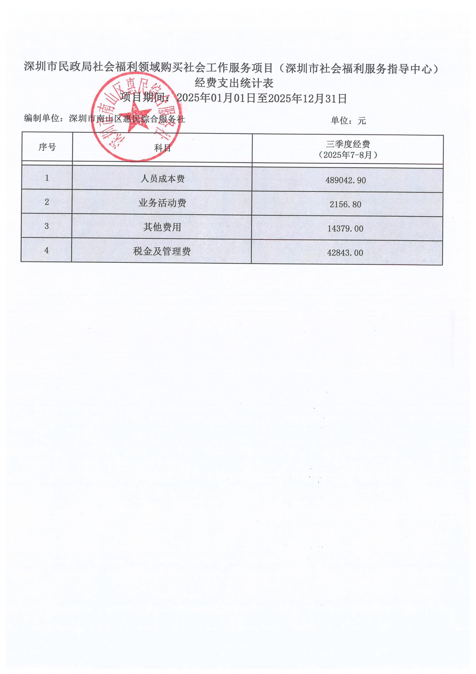 深圳市民政局社会福利领域购买社会工作服务项目(深圳市社会福利服务指导中心)经费支出统计-第三季度(2025年7-8月)