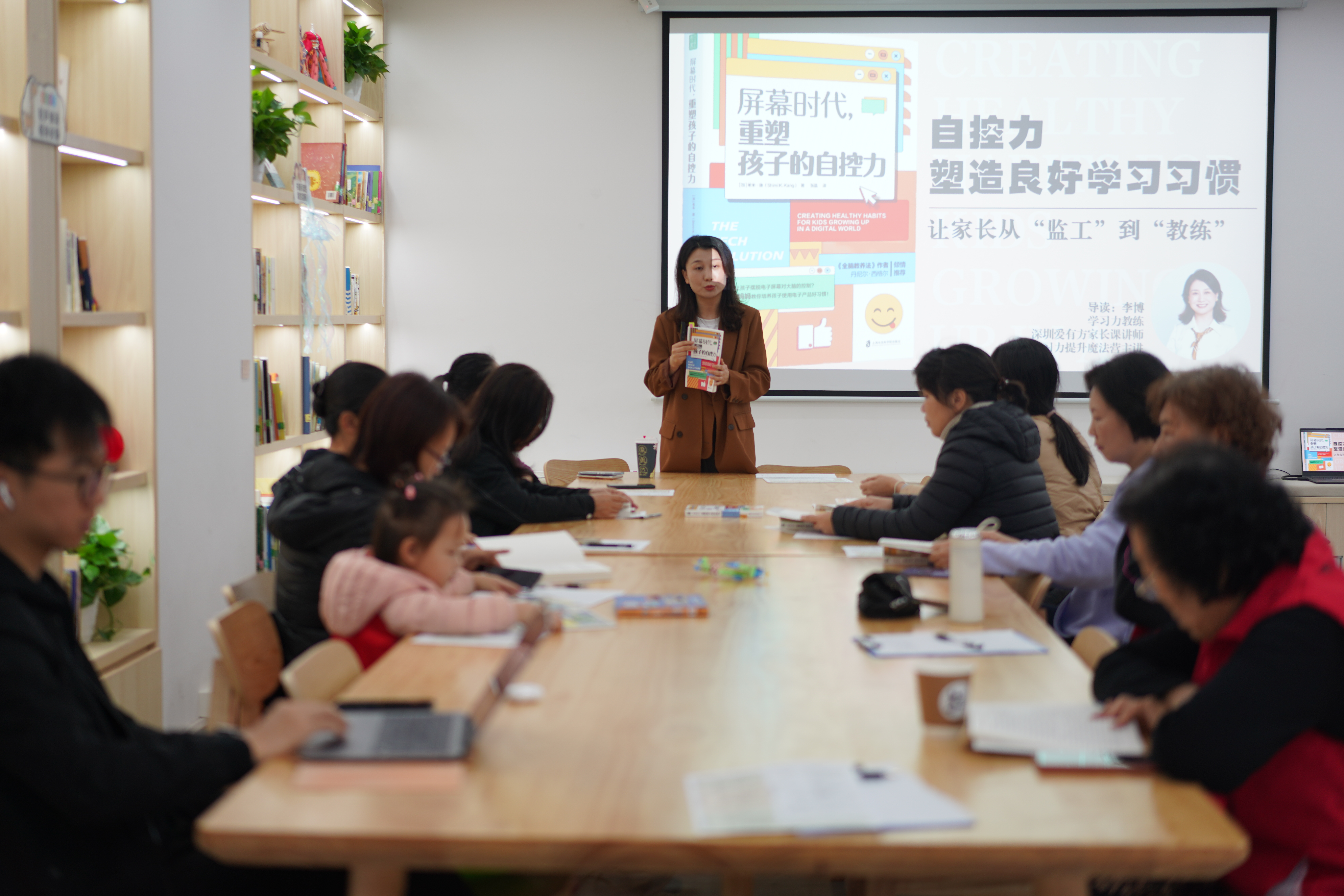 9日,社区组织居民家长们共读书目《屏幕时代孩子的自控力》,让大家从脑科学以及心理学的角度了解长时间使用电子产品的危害,帮助社区家长缓解了教育过程中对孩子的手机管控焦虑。