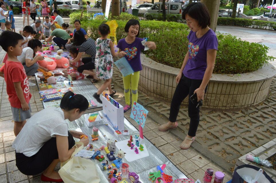 此次活动鼓励居民把家中大到家具电器,小到书籍饰物文具等闲置物品拿到公益集市上与其他居民进行物物交换,或低价处理。活动现场吸引了二十个家庭摆设摊位,每个家庭独具匠心,设计了各具特色的摊位牌,物品摆放琳琅满目,摊位呈两边对称,形成“购物商业街”的摆放模式,吸引了不少于五十个居民前来淘宝!活动现场社工与家长积极引导和鼓励小朋友跟顾客交涉,小朋友们从初时的羞涩胆怯到最后独当一面,讲解物品使用方式,讲价商谈,有模有样地当起了小老板。现场收费方式也与时俱进,支付宝、微信支付也为活动形式增添了光彩。此次活动促进了社区居民之间的沟通交流,锻炼了小朋友的社交能力以及培养他们节约环保,爱护环境的的意识。
